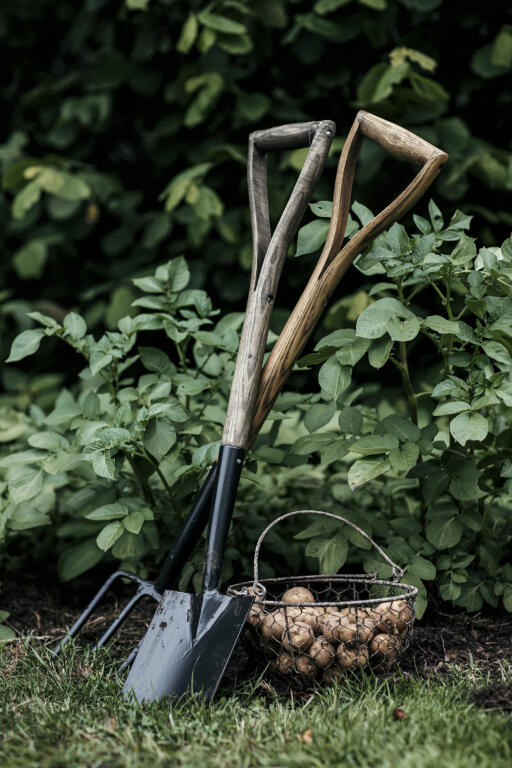 Halvlang spade av svartlakkert stål og med FSC-sertifisert ask. Passer til å brukes i opphøyde bed, f.eks. pallekarmer. Et praktisk redskap i høy kvalitet. L 83 cm.