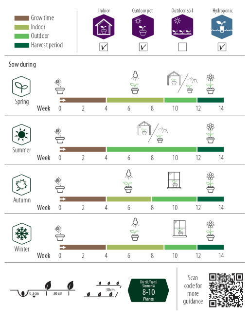 Mer detaljert informasjon om hvordan du sår, finnes her på produktsiden som du finner via QR-koden på posen.