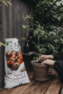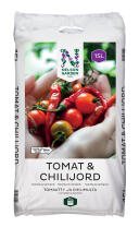 Tomat og Chilijord er en miljøvennlig jordblanding som distribuerer næring jevnt og trutt til hele planten, slik at planten vokser godt og bladene blir grønne og fine. Anbefales til bruk ved ompotting av stiklinger og til etablerte planter.
