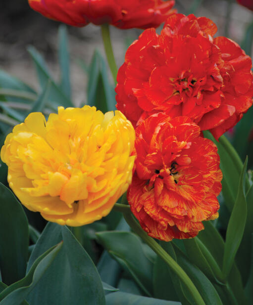 En spektakulær tulipan som åpner seg mer og mer hver dag, som en pion. Den skifter også farge, fra gyllengult til oransjerødt. En kraftig, duftende fargebombe i bedet i løpet av vårens siste uker.