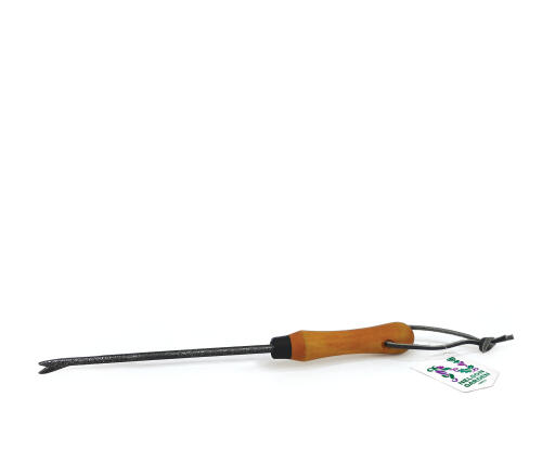 Ugressjern i svart stål med et smalt trehåndtak som passer de fleste hender. Brukes til fjerning av ugress med dype røtter. L 30 cm.