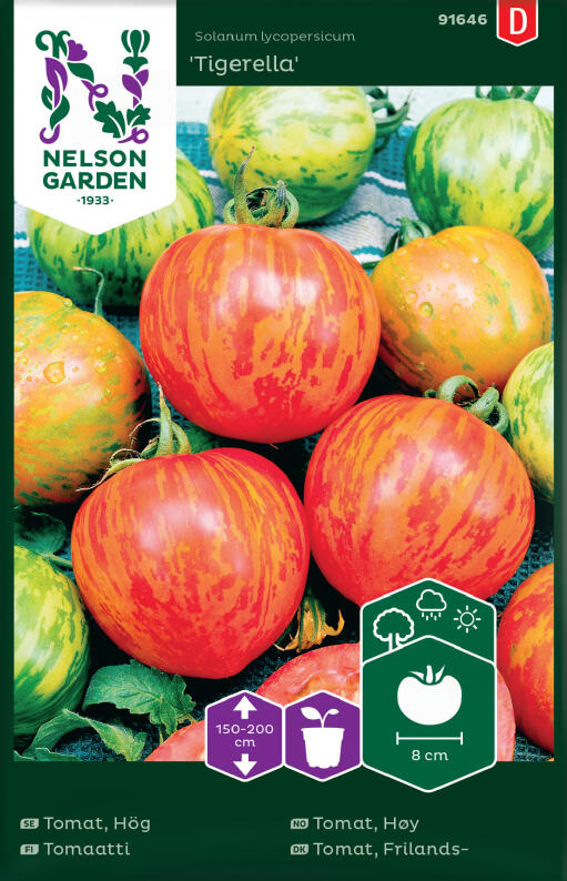 Sort som gir tidlig avling av røde tomater med gyldne striper. Plantes ut først når minimumstemp. er over 8°C om natten. Planten trenger støtte, og skuddene i bladvikene, "tyvene", skal fjernes.