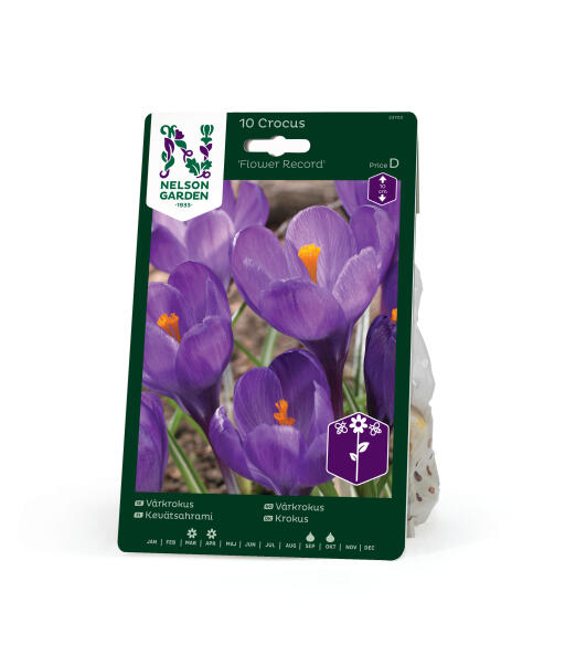 'Flower Record' er en vårkrokus med herlig store, blåfiolette blomster. Blant krokusene har vårkrokusen de største blomstene. I tillegg til i bedet passer den fint i kanten av busker og foran trær der vårsolen lyser.