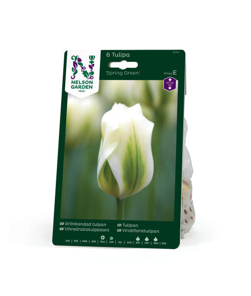 Den stilige blomsten er benhvit med grønt bånd på hvert kronblad. Sorten tilhører Viridiflora-gruppen. Meget fin som snittblomst.