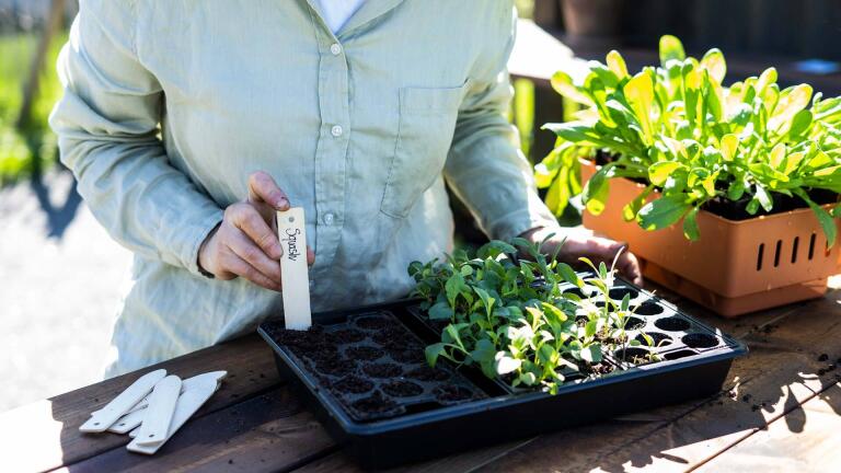 Minidrivhuset Rootmaster med vanningsfunksjon som gjør forkultiveringen superenkel – fyll trauet med vann ved behov og la vanningssnoren ta seg av vanningen.